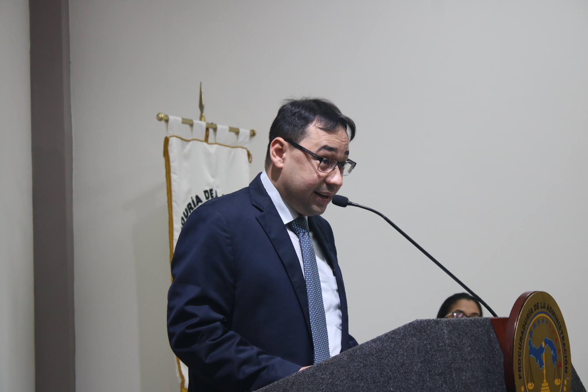 El secretario general de la Procuraduría de la Administración, José Alberto Álvarez, ofreció las palabras de bienvenida a la jornada educativa titulada “Regulación del Mercado Energético: Visión Crítica de la Transición Energética en Panamá”, desarrollada en el Auditorio Carlos Pérez Castrellón, del Centro de Capacitación e Investigación Dra. Alma Montenegro de Fletcher.