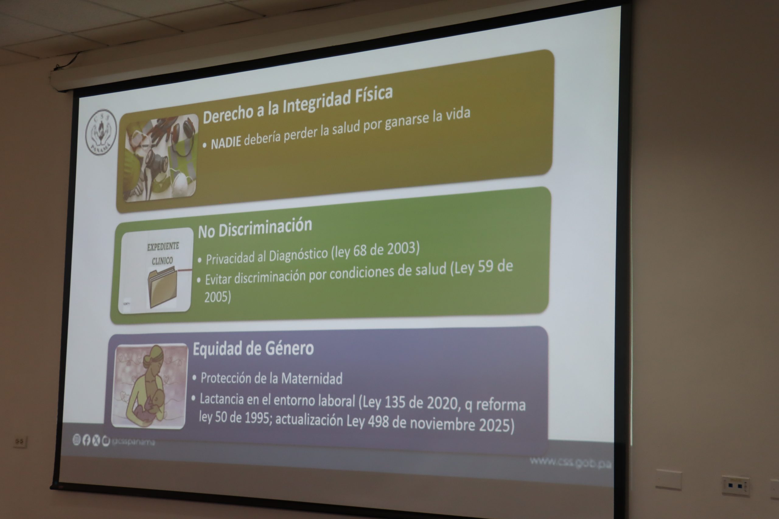 La jornada contó con la participación de especialistas de la Caja de Seguro Social (CSS): la doctora Janice Cedeño Rankin, jefa de la Oficina de Promoción y Prevención de Salud Ocupacional, y la licenciada Iliana Avecilla, coordinadora nacional en Psicología Laboral de Salud y Seguridad Ocupacional.