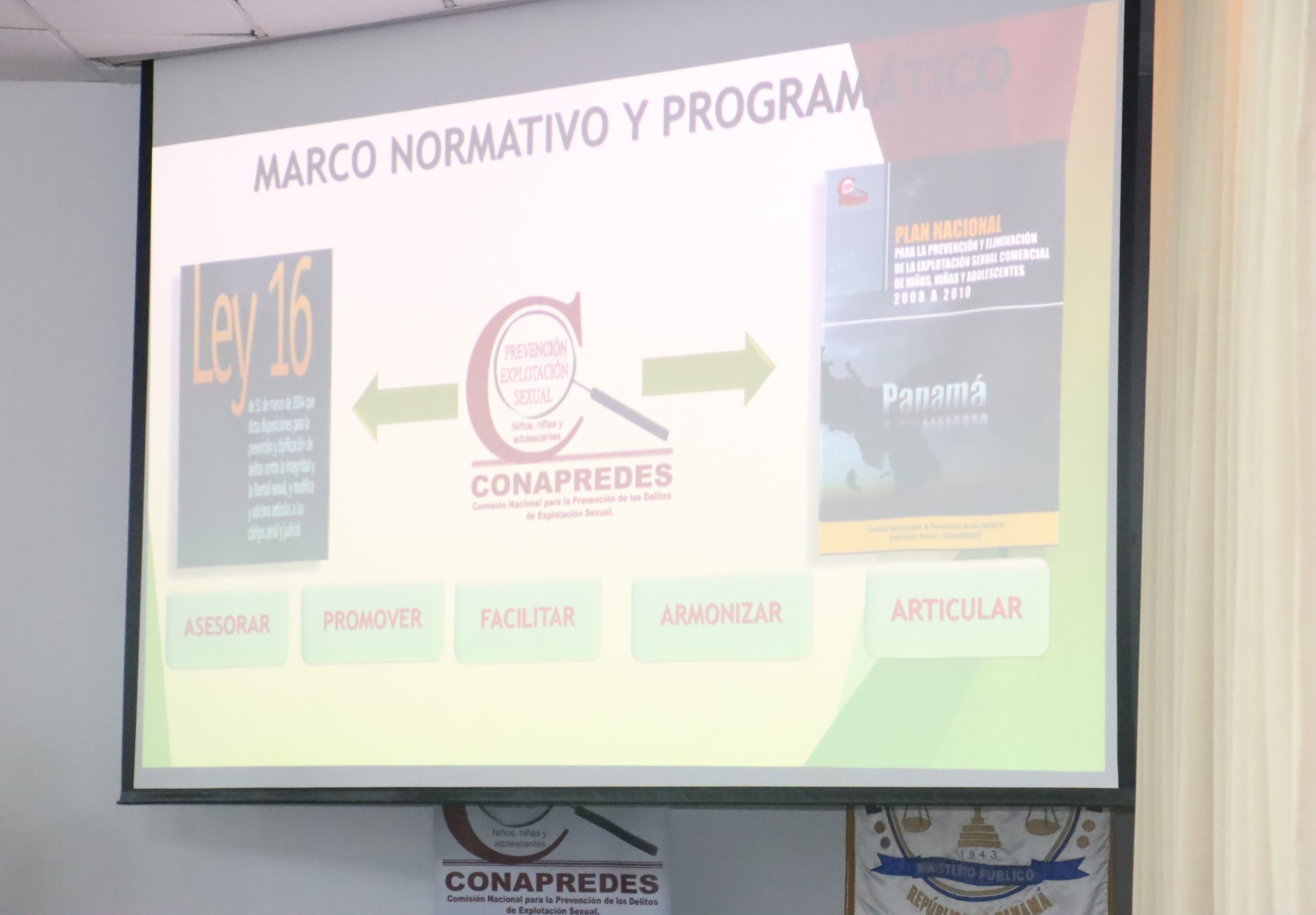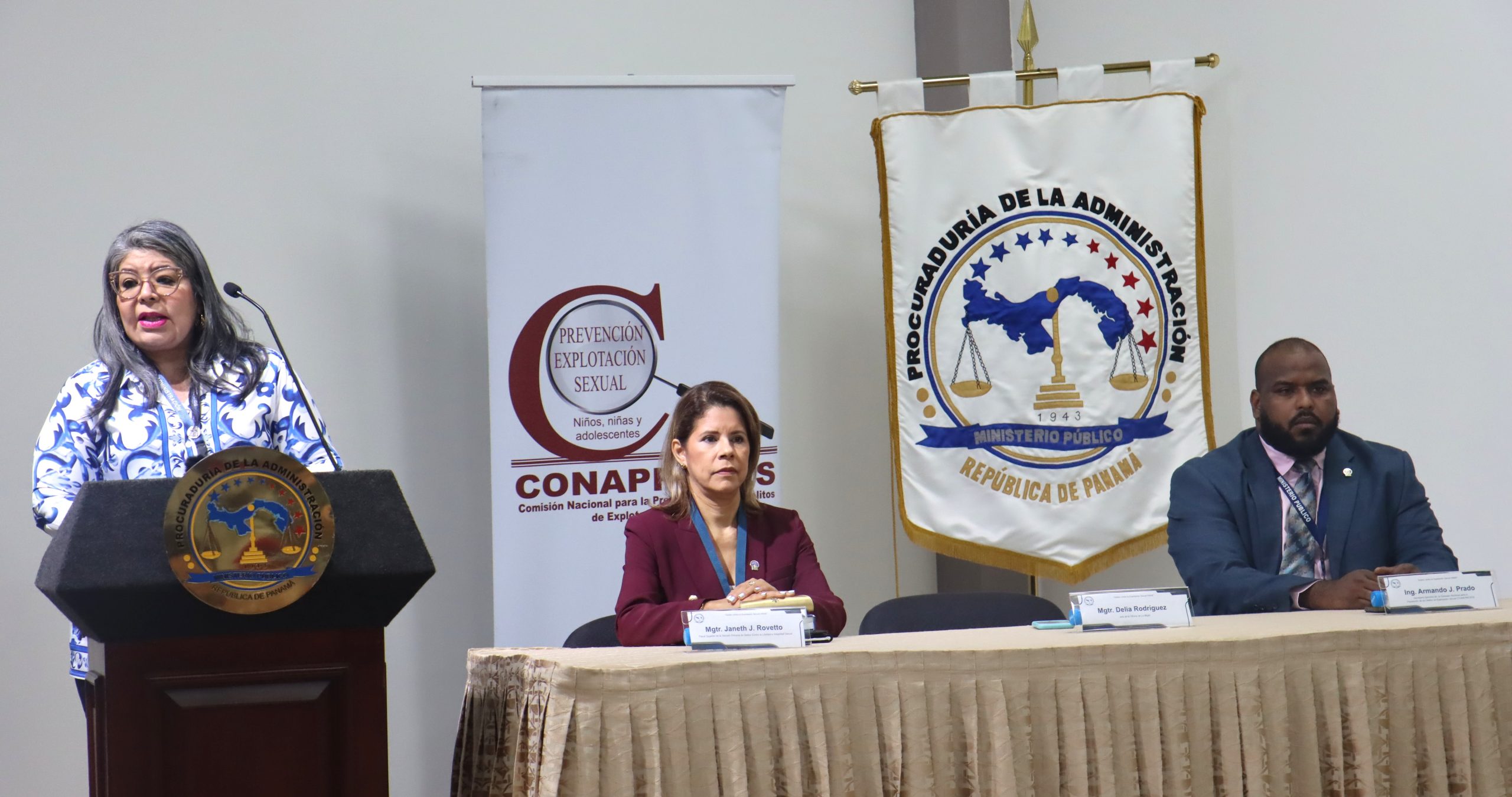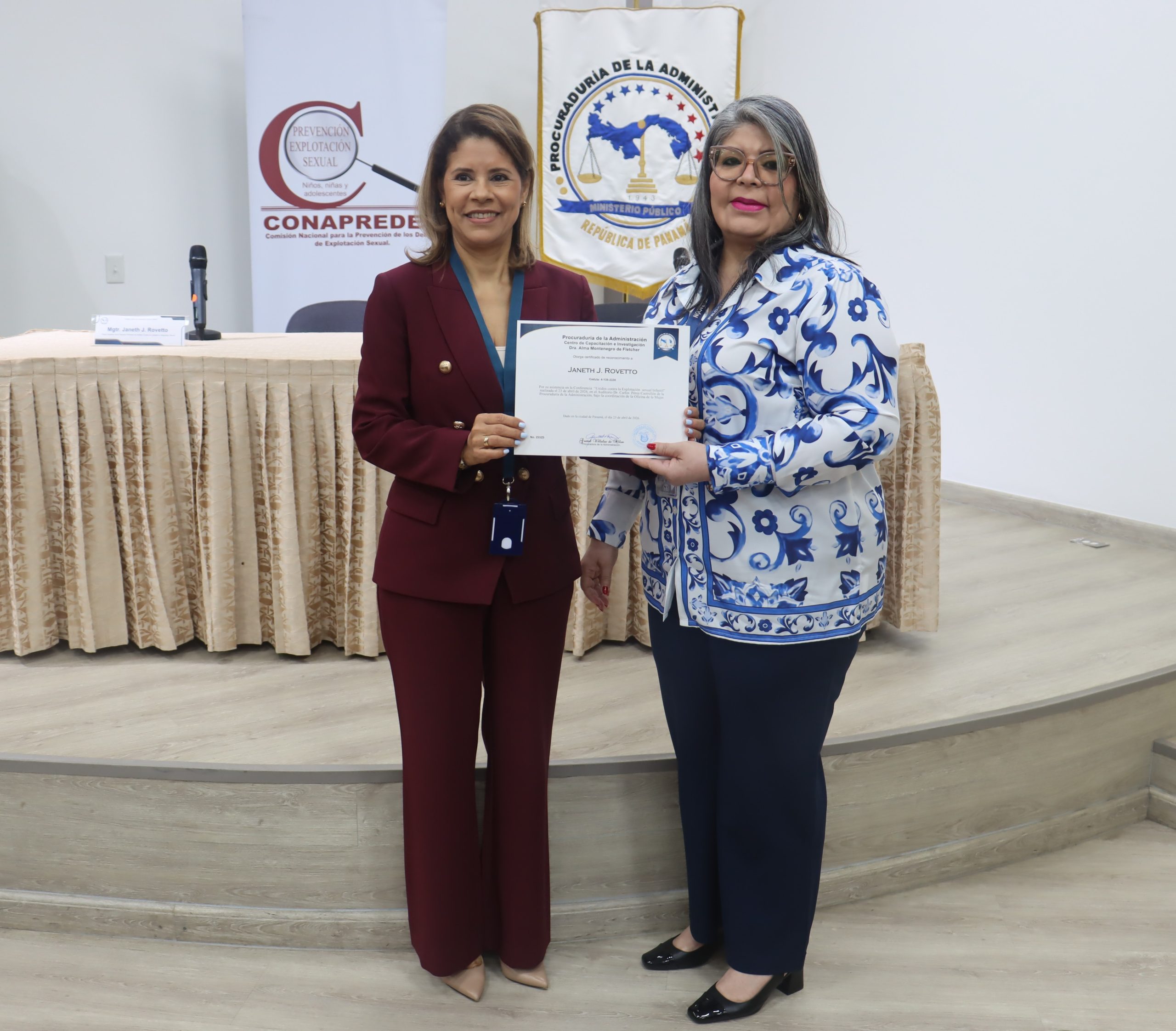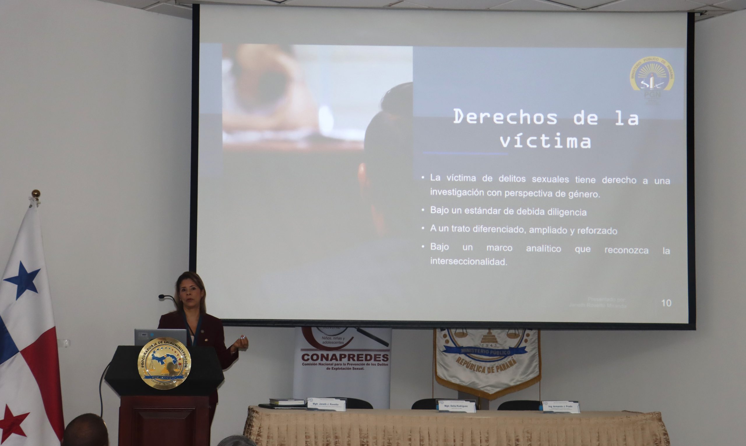 El Centro de Capacitación e Investigación, Dra. Alma Montenegro de Fletcher, fue sede de la conferencia “Unidos contra la explotación sexual”, impartida por la fiscal superior Janet Rovetto, de la Sección Primaria de Delitos contra la Libertad e Integridad Sexual, y Armando Prado, secretario ejecutivo de la Comisión Nacional para la Prevención de los Delitos de Explotación Sexual (CONAPREDES).